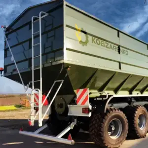 | System ważenia z drukarką, GPS, GPRS (Dinamica Generale, Włochy); System plandekowy; Rękaw PVC (IPL Włochy) Ø 300mm, 400mm, długość 1,2 m do załadunku siewników; Przedłużenie ślimaka SHRP-5, Ø 250 mm, długość 5 m do załadunku siewników; Możliwość wymiany nadwozia i montażu beczki na wodę oraz na nawozy organiczne, przyczepa wywrotka na podwoziu PBN; Automatyczny korektor siły hamowania WABCO; Zaczep na kulę K80; Oś skrętna; Hydraulicznie składana końcówka ślimaka; Hydrauliczna zmiana kąta nachylenia ślimaka; Możliwość wyboru koloru przyczepy; Koła: 650/50 R22,5; 650/55 R26,5; 710/50 R26,5. | |